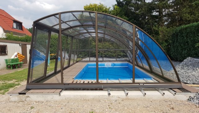 Pool-Überdachung: ALUKOV VIVA-einseitige Laufschiene (Verglasung Rauchton)