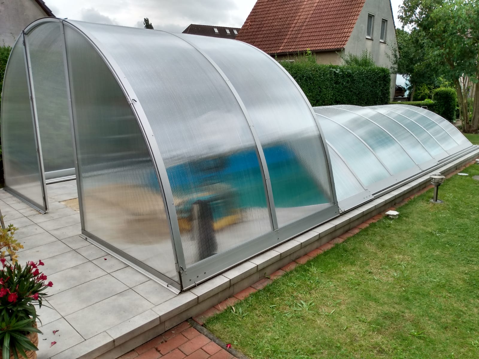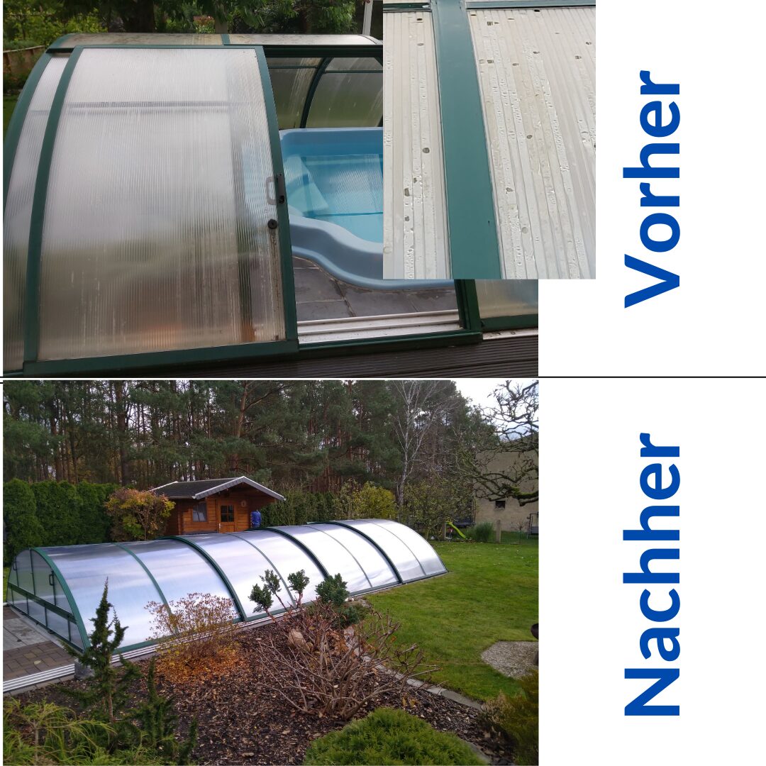 Reparatur (Hagelschaden) einer Poolüberdachung 11,50m x 6,00m x 2,30m, Austausch und Eindichtung der Polycarbonat-Verglasung (Doppelstegplatten)