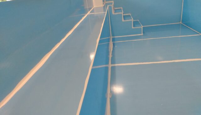 Besonderheiten: Komplettreinigung des Beckens – Entfernung von Kalk-Ablagerungen